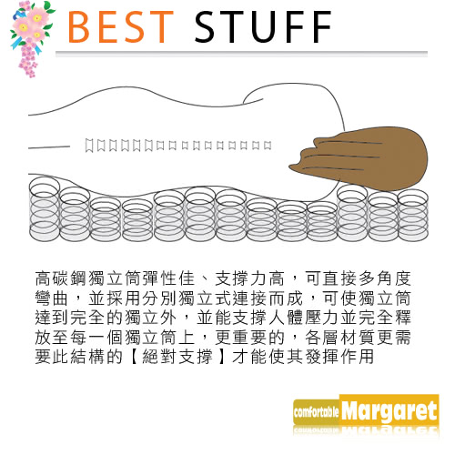 三段式獨立筒床墊其中的彈簧線徑粗細分為三部分,前者支撐性強卻偏硬; ...由於人體腰部到臀部的重量占全身的比重為44%,前者支撐性強卻偏硬; ...卡蜜爾-三段式獨立筒床墊特別在腰部到臀部 ...